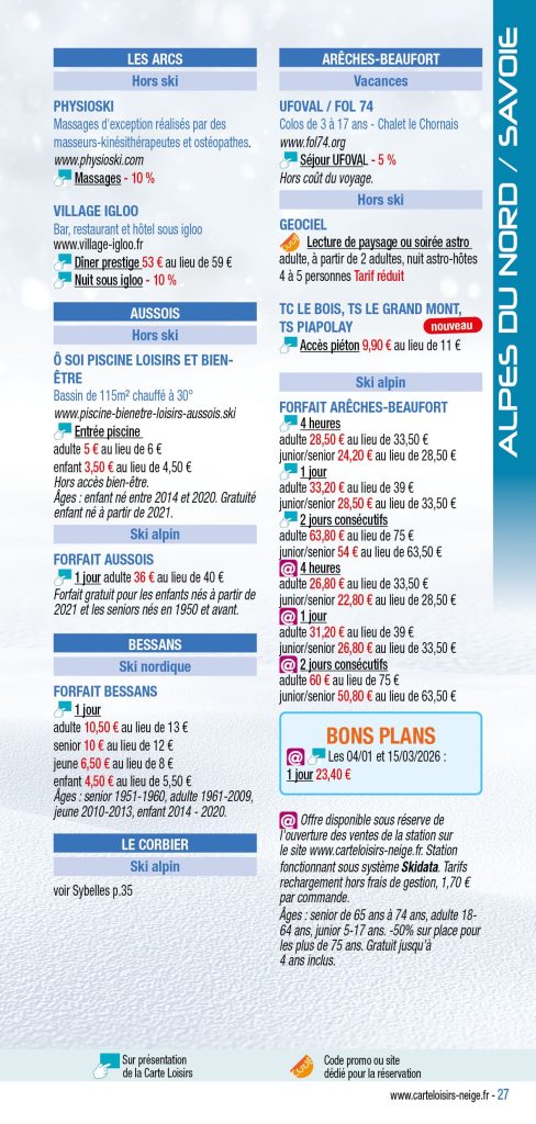 > Vous n’avez droit qu’à 3 journées à tarifs réduits par station, sur une période de 7 jours consécutifs. A partir de la 4ème journée sur cette période, si vous continuez à utiliser le badge Mont’ Pass, la station appliquera le tarif public.
