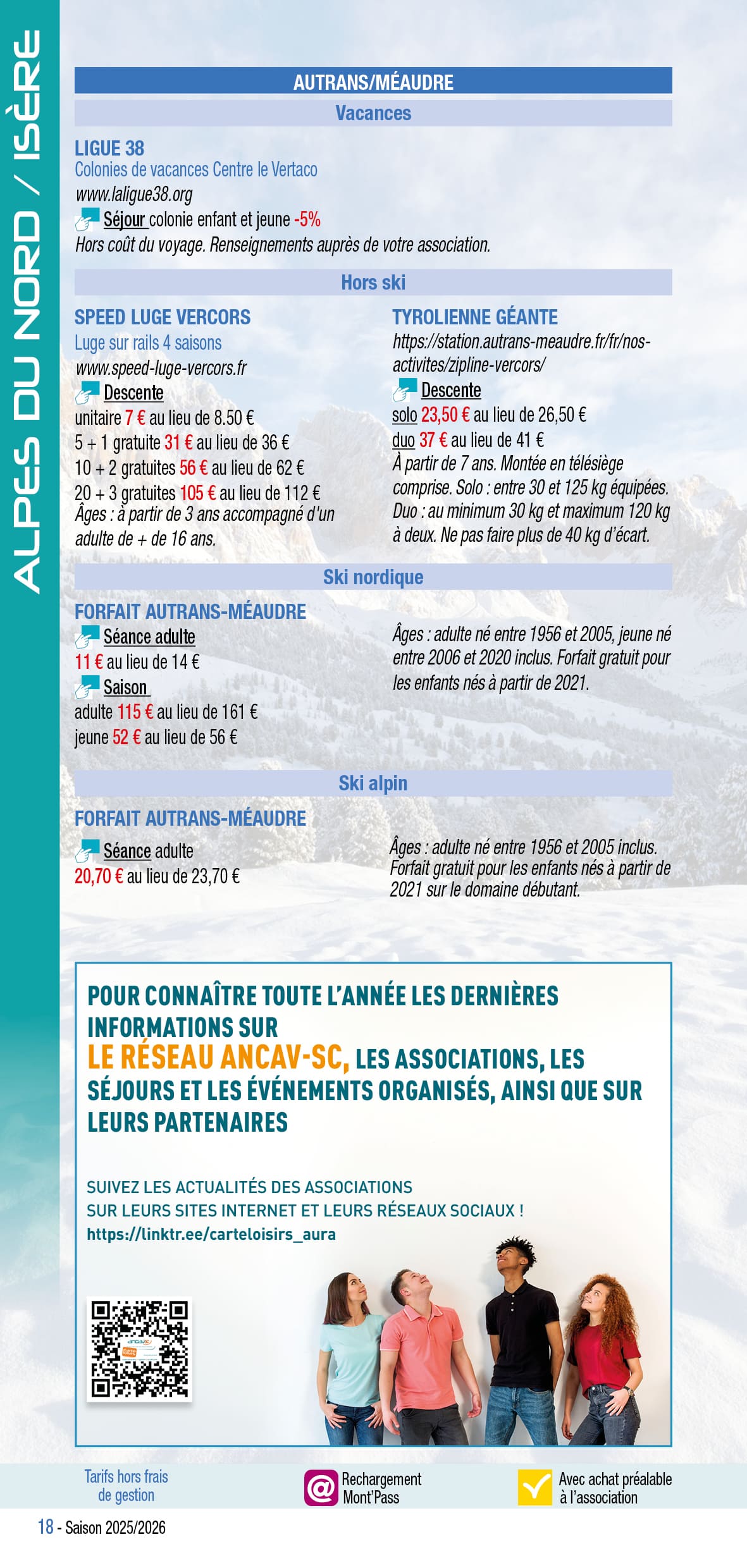 Ages : enfant né entre 2003 et 2017, adulte né entre 1953 et 2002, senior né en 1952 ou avant. Forfait gratuit pour les enfants nés en 2018 ou après.