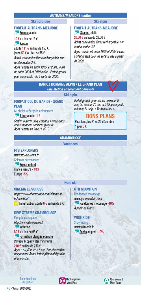 Réduction valable toute l’année, sur chaque période de vacances scolaires.