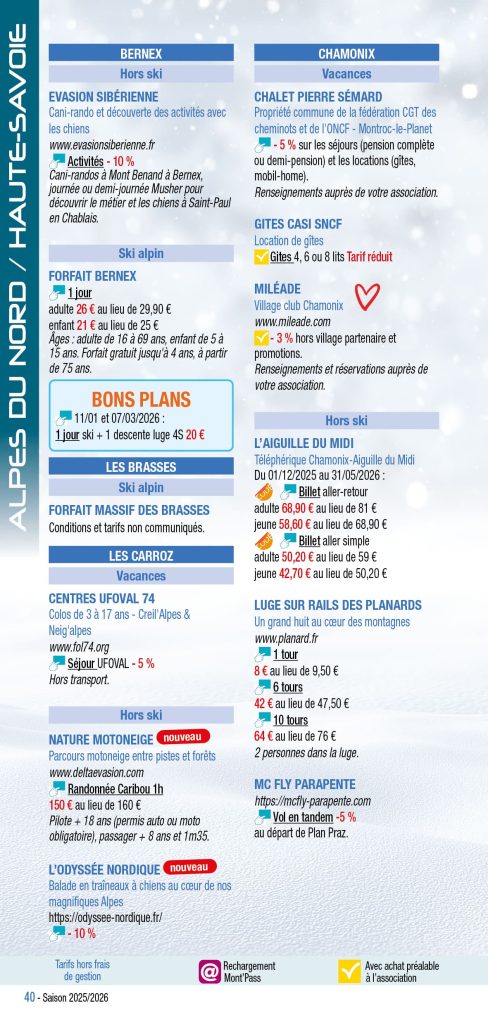 Ages : enfant de 5 à 15 ans. Forfait gratuit jusqu’à 4 ans et à partir de 75 ans.