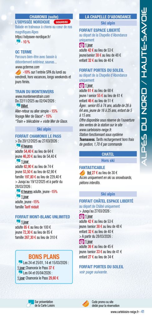 Pour plus d’informations sur l’état d’ouverture des pistes, la météo, les conditions de vente, les actualités de la station : www.skipass-chatel.com